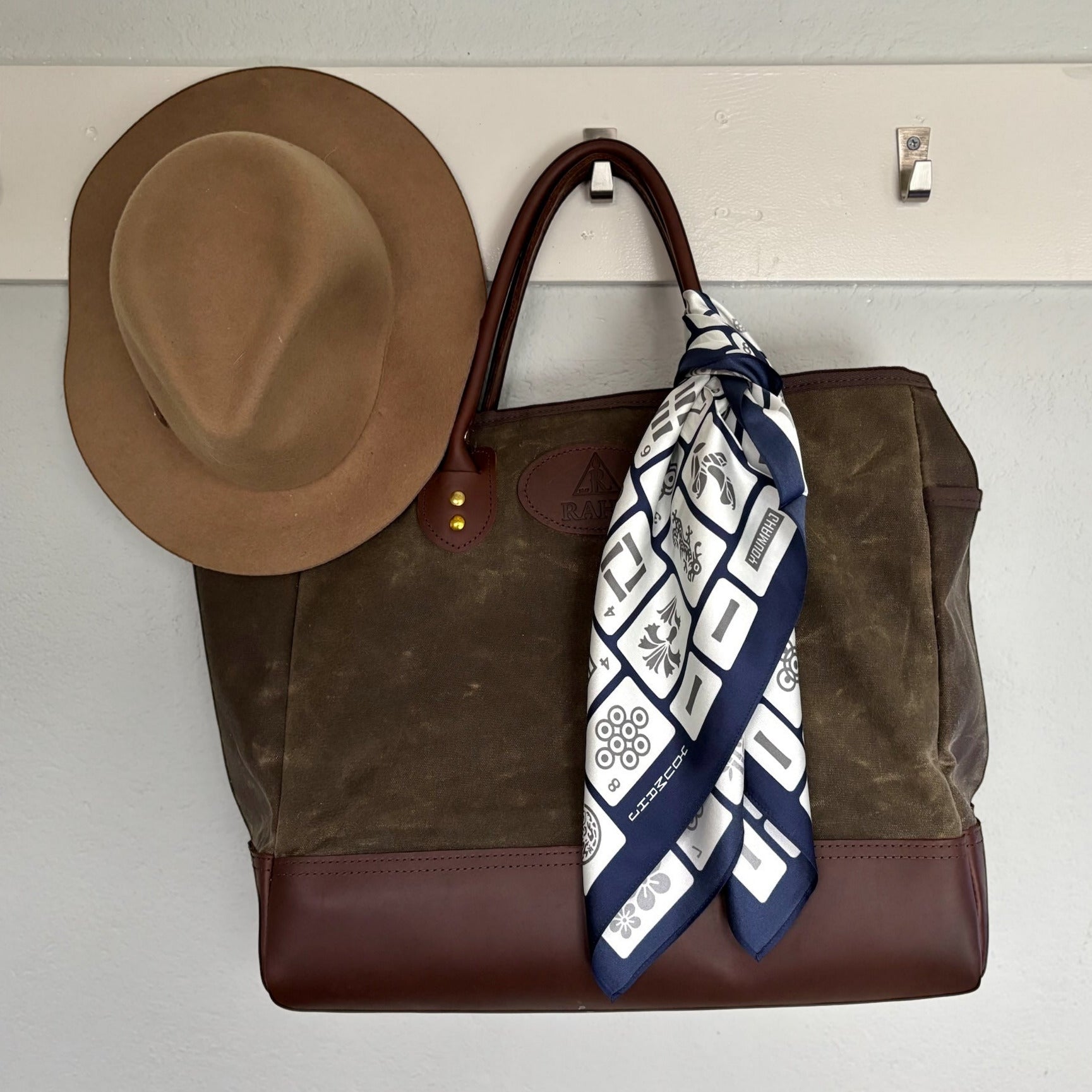 Our latest design fully embraces the art of the tile. This 27" fine silk scarf is the perfect accent to tout your tile prowess with its deep blue and classic cream combo.
