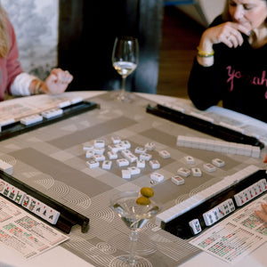 Loading image: Grey bandana with a white geometric pattern and 'YOUMAHJ' branding.