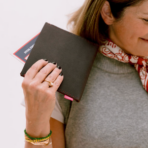 Loading image: Pink bandana with white geometric pattern and text on a pink background