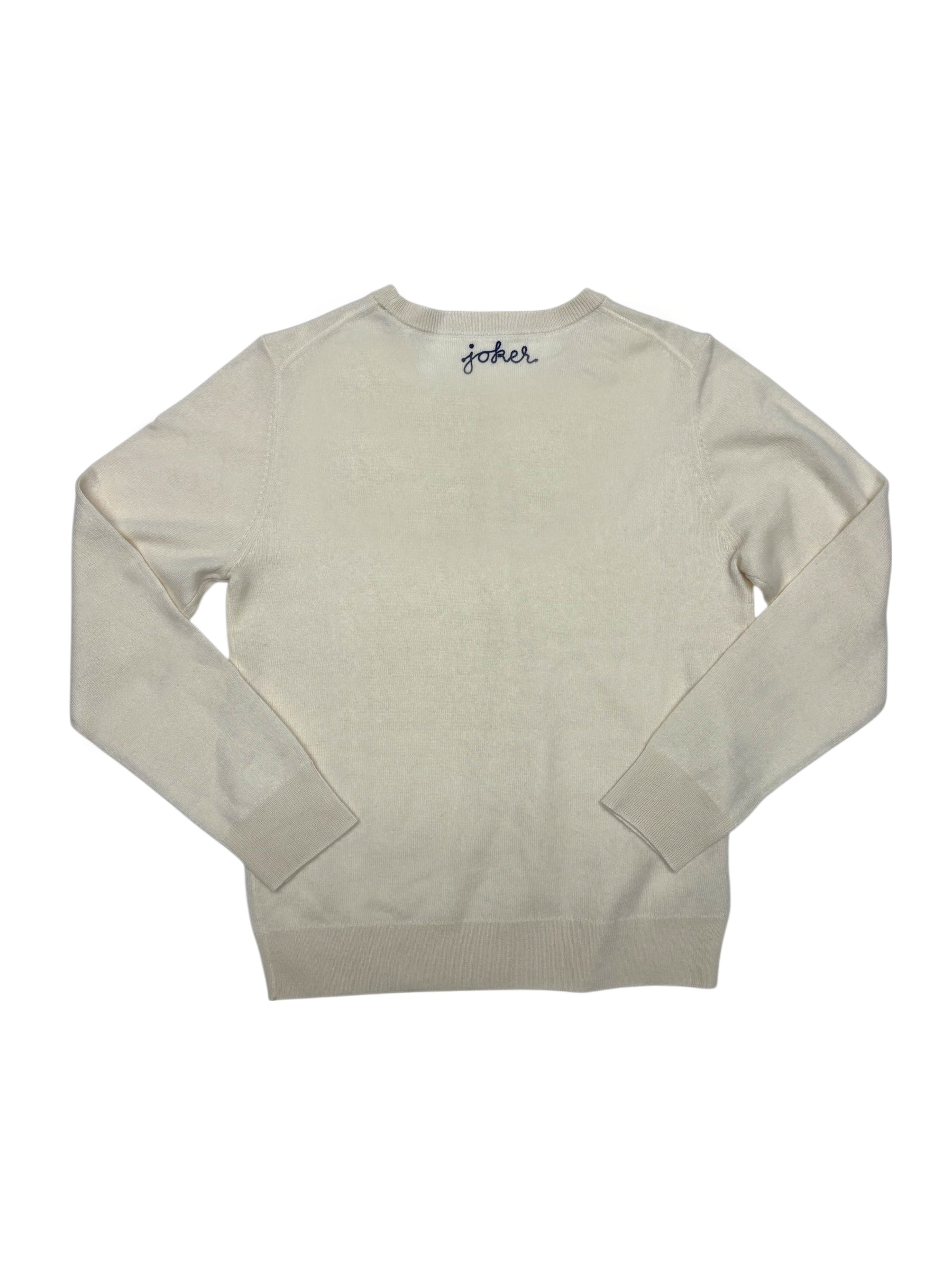 Our Cream color never goes out of style. With "YouMahj" sweetly sewn at the neckline, it’s a subtle way to let the world know you play the game… and you’re proud to own it. Then, pull your hair back in a pony to show that you really are the queen of jokers.